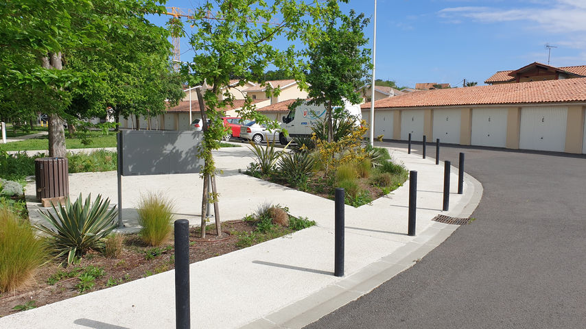 L’ambiance du Bassin d’Arcachon est préservée avec des touches végétales d’essences locales. Un travail important est mené sur le parking exposé plein sud, afin de lui apporter ombrage et fraîcheur en toute saison. L’arrière de la résidence est un parc arboré réhabilité lui aussi : le patrimoine arboré périssant est repensé ainsi que les cheminements piétons, afin de conserver l’important couvert végétal qui accompagne parfaitement la résidence. Le projet architecturel prévoit lui la réhabilitation complète des 75 logements du bâtiment ainsi que la construction de 7 nouveaux logements mixtes séniors.